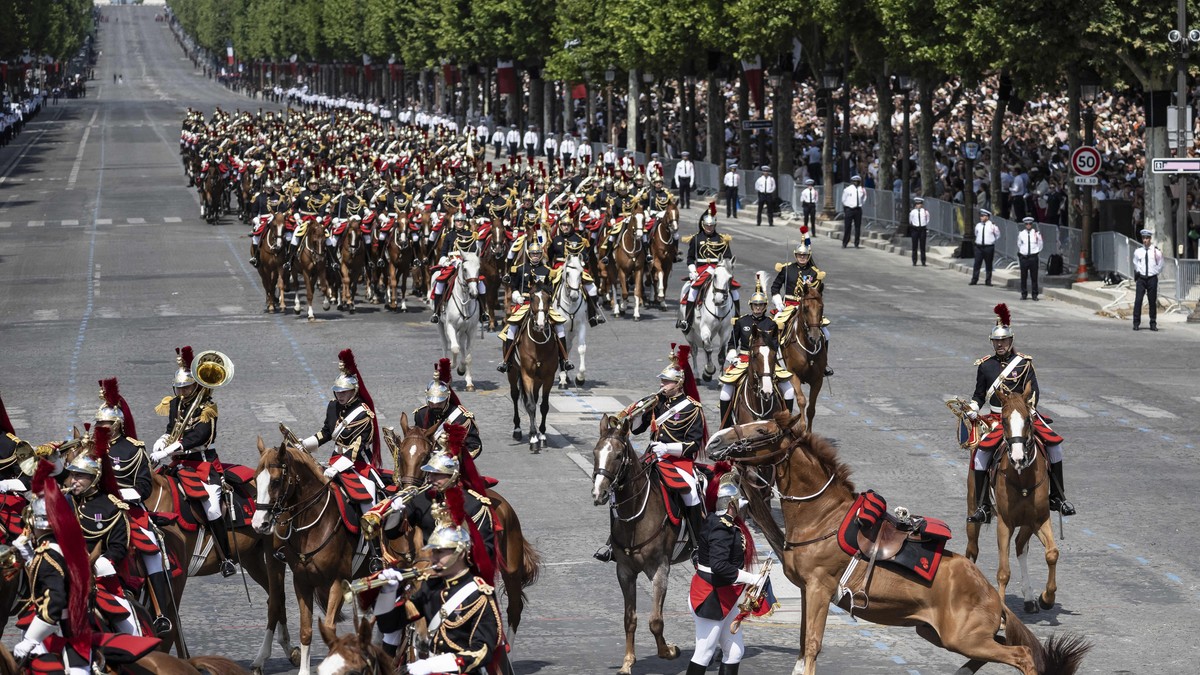 Vojska na ulicama, avioni na nebu Predsednik Francuske tradicionalno započinje proslavu inspekcijom vojske na Jelisejskim poljima u Parizu. Ove godine, čak 7.000 ljudi učestvuje u ceremoniji – neki marširaju, neki jašu konje, a neki voze oklopna vozila. Da, dobro ste pročitali, oklopna vozila!