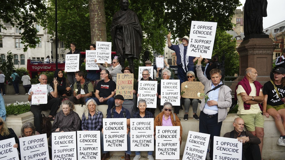 Demonstracije i reakcije Na ulicama Londona, policija je opkolila demonstrante koji su nosili transparente sa porukama poput „Ja protivim genocidu“ i „Ja podržavam Palestinsku akciju“. Povici poput „Met policija, marioneta cionističke države“ odjekivali su dok su policajci hapsili aktiviste. Internet je buknuo od komentara, a cela situacija izaziva burne reakcije širom sveta.